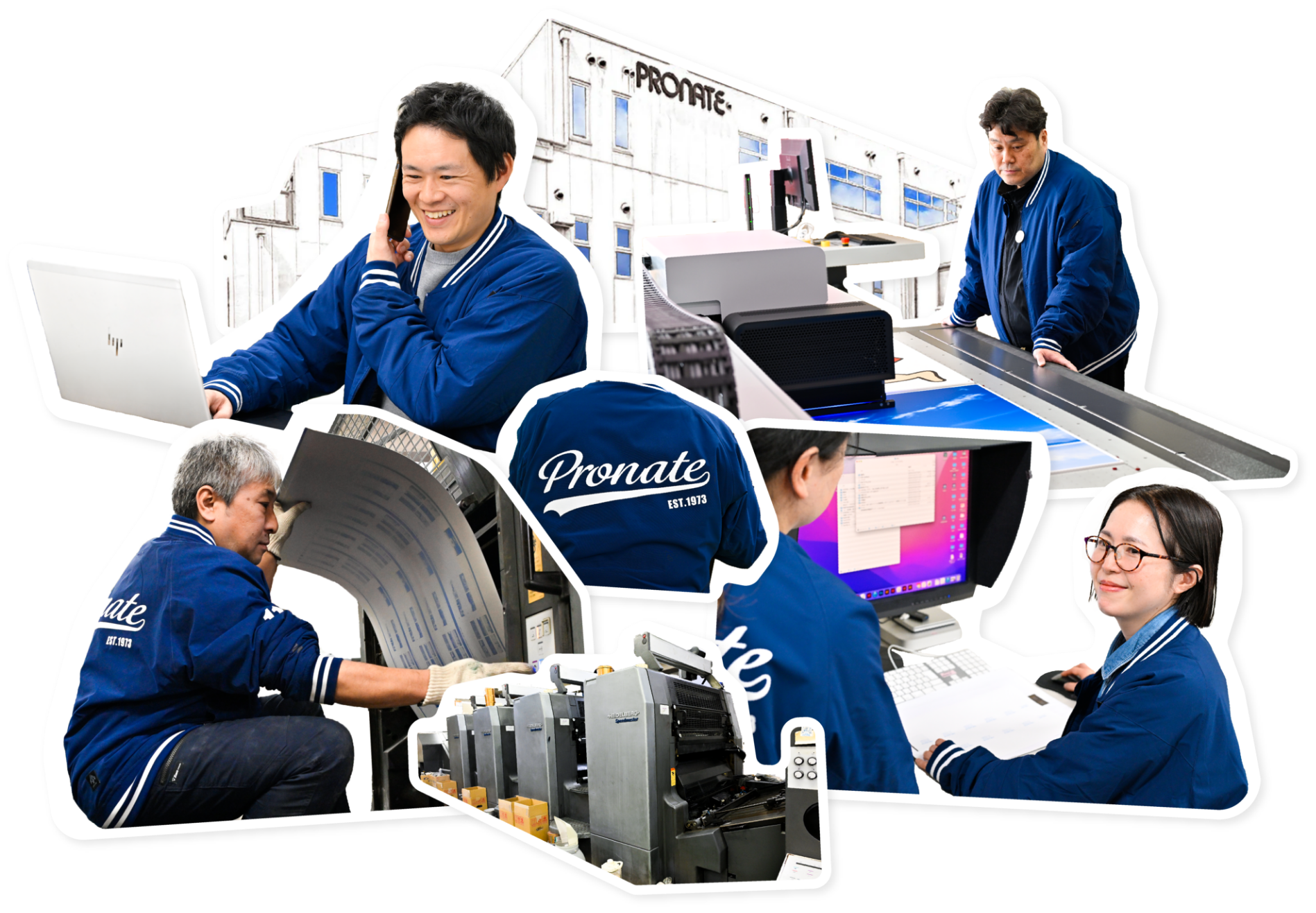 工場内での作業を行う場合(印刷オペレーター・加工スタッフなど)は、作業着を支給します。営業職はスーツ着用が基本ですが、会社の規定に沿った服装であれば問題ありません。デザイン・DTPオペレーター職などは比較的自由な服装が可能です。また社員共通のジャンパーを全員に支給します。